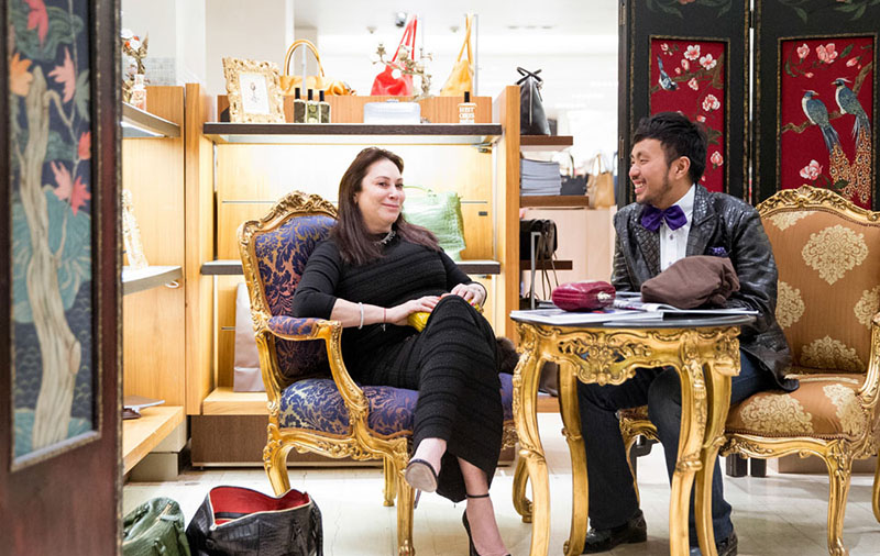 Ethan met fashion director Alla Verber for the first time whilst on his way to a fashion show.. Draped in her signature coat, she flung open the door to her distinctive gold Bentley and offered him a lift.