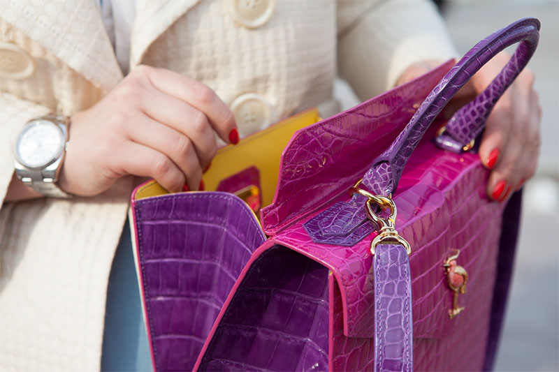 As they made their way to the show, she confided that whilst she loved her handbags, she loved rather less how they left her essentials in plain sight of the paparazzi.